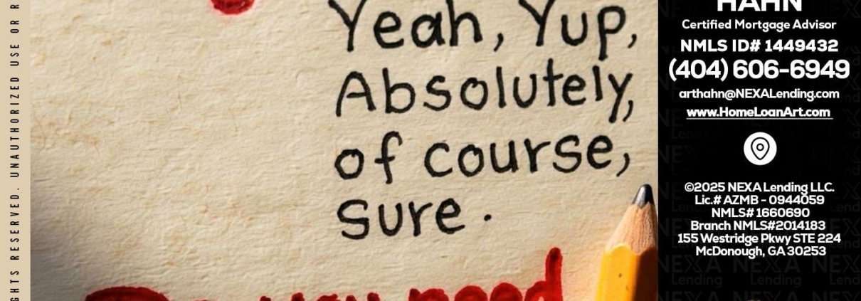 answer without - Arthur Hahn -Mortgage Loan OriginatorHi, my name is Arthur Hahn. I’m a Loan Officer with NEXA Lending LLC., offering personalized mortgage solutions, fast customized quotes, great rates and service with integrity.