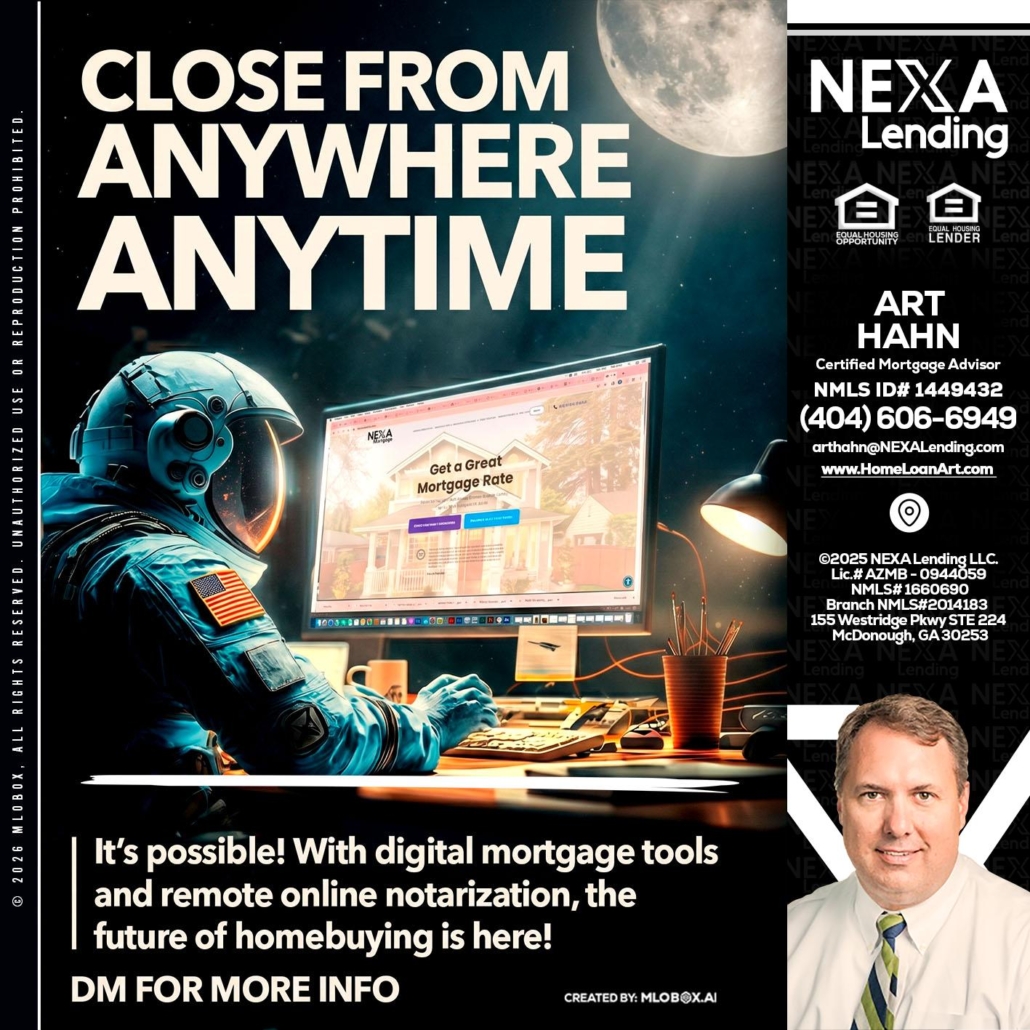 Hi, my name is Arthur Hahn. I’m a Loan Officer with NEXA Lending LLC., offering personalized mortgage solutions, fast customized quotes, great rates and service with integrity.