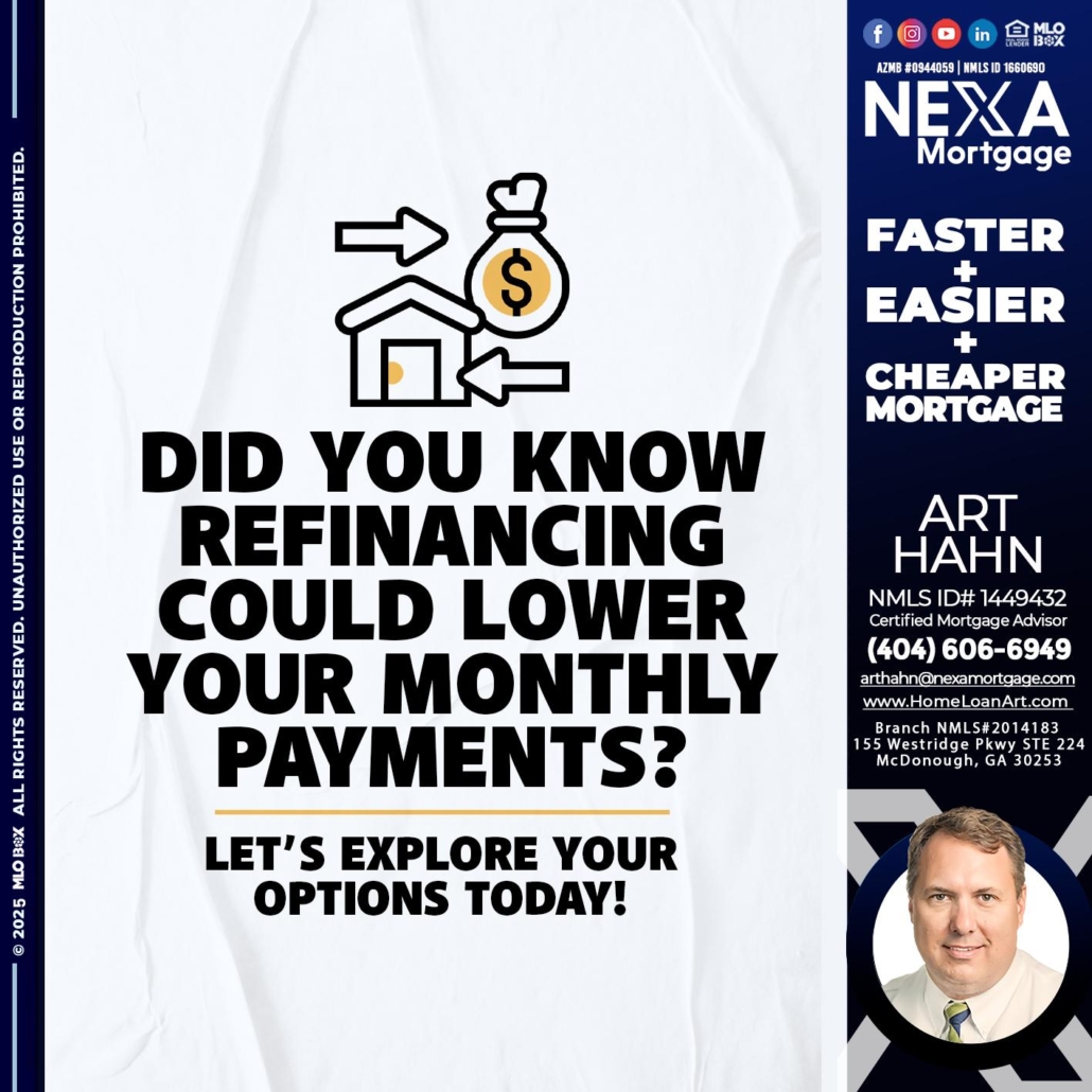 Hi, my name is Arthur Hahn. I’m a Loan Officer with NEXA Mortgage LLC., offering personalized mortgage solutions, fast customized quotes, great rates and service with integrity.