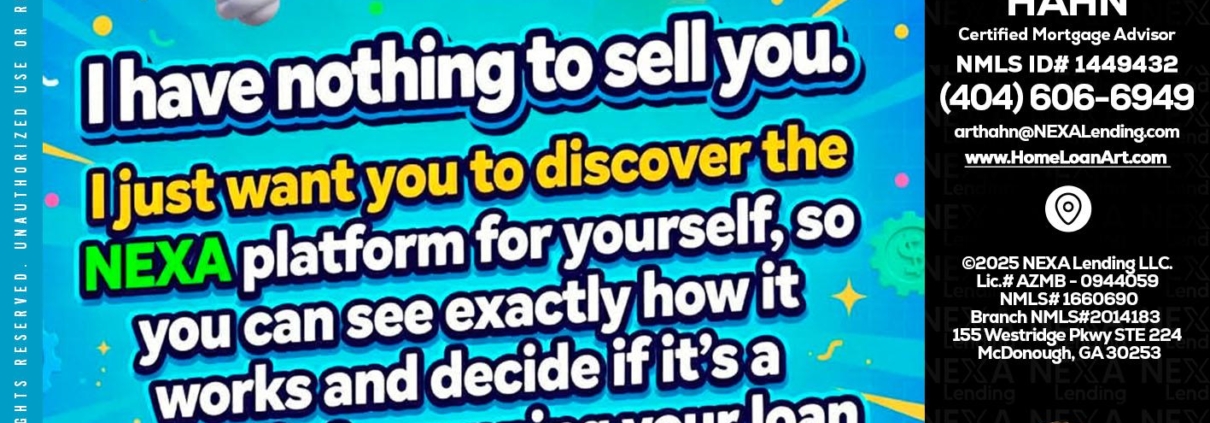 Hi, my name is Arthur Hahn. I’m a Loan Officer with NEXA Lending LLC., offering personalized mortgage solutions, fast customized quotes, great rates and service with integrity.