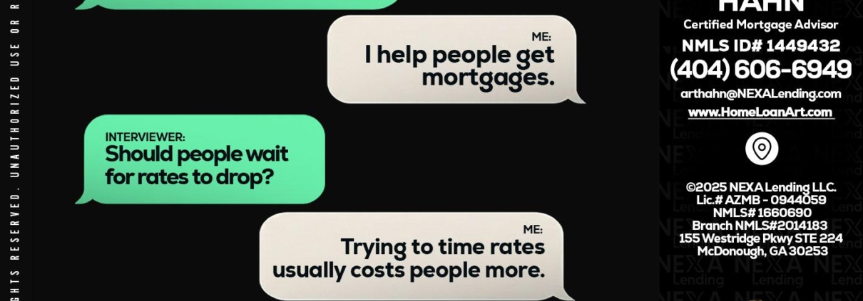 Hi, my name is Arthur Hahn. I’m a Loan Officer with NEXA Lending LLC., offering personalized mortgage solutions, fast customized quotes, great rates and service with integrity.
