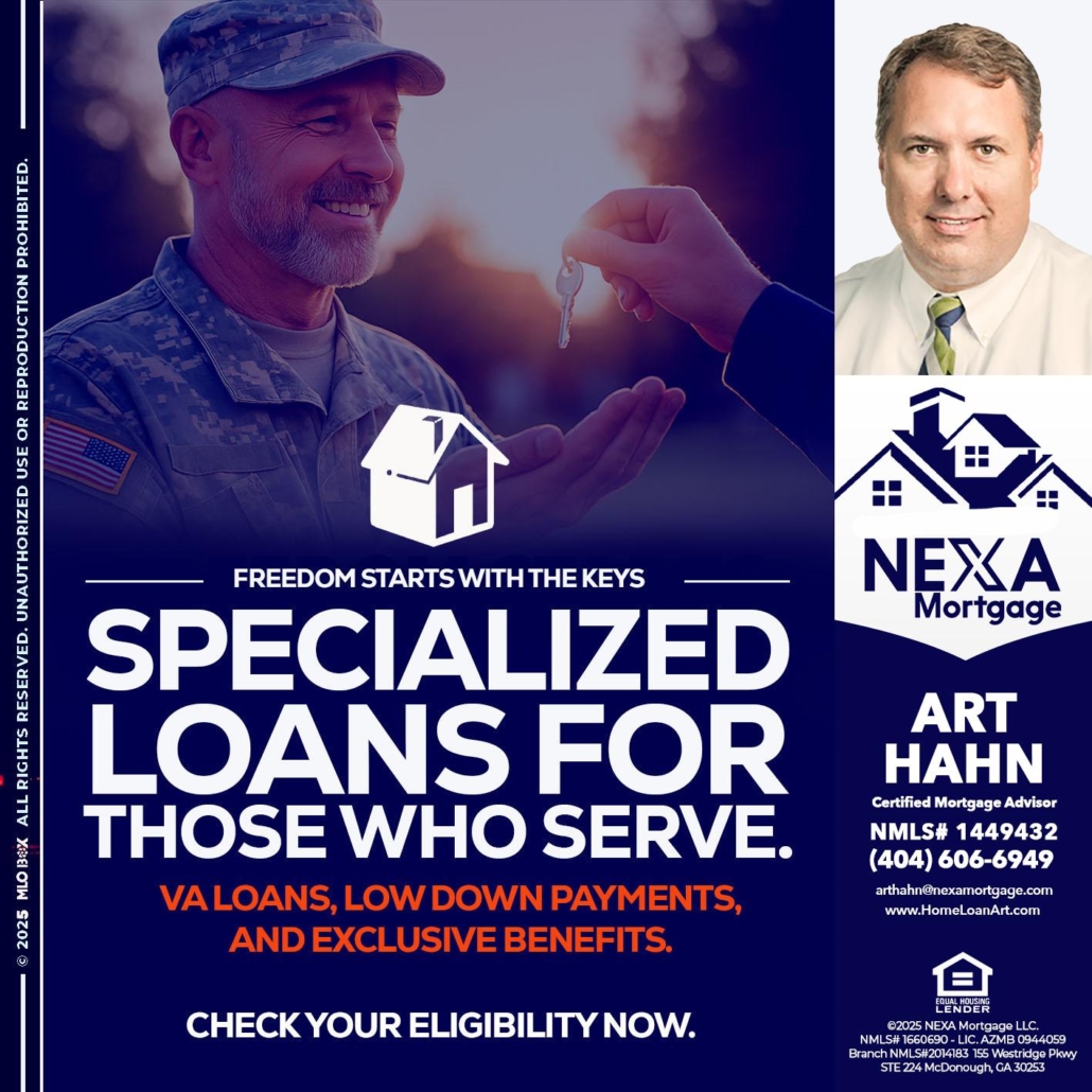 Hi, my name is Arthur Hahn. I’m a Loan Officer with NEXA Mortgage LLC., offering personalized mortgage solutions, fast customized quotes, great rates and service with integrity.