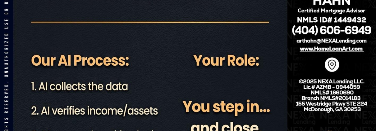 Hi, my name is Arthur Hahn. I’m a Loan Officer with NEXA Lending LLC., offering personalized mortgage solutions, fast customized quotes, great rates and service with integrity.