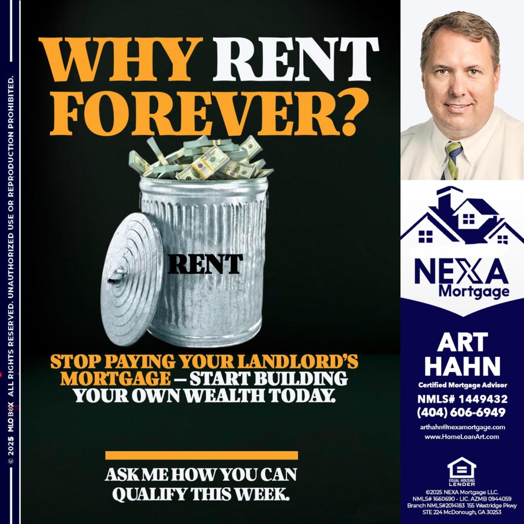 Hi, my name is Arthur Hahn. I’m a Loan Officer with NEXA Mortgage LLC., offering personalized mortgage solutions, fast customized quotes, great rates and service with integrity.