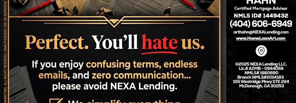 Hi, my name is Arthur Hahn. I’m a Loan Officer with NEXA Lending LLC., offering personalized mortgage solutions, fast customized quotes, great rates and service with integrity.