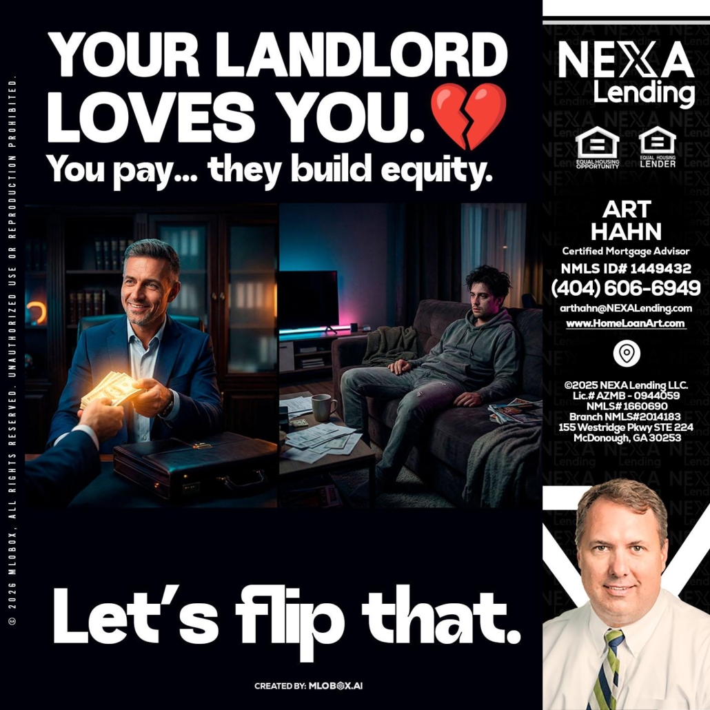your landlord - Arthur Hahn -Mortgage Loan OriginatorHi, my name is Arthur Hahn. I’m a Loan Officer with NEXA Lending LLC., offering personalized mortgage solutions, fast customized quotes, great rates and service with integrity.